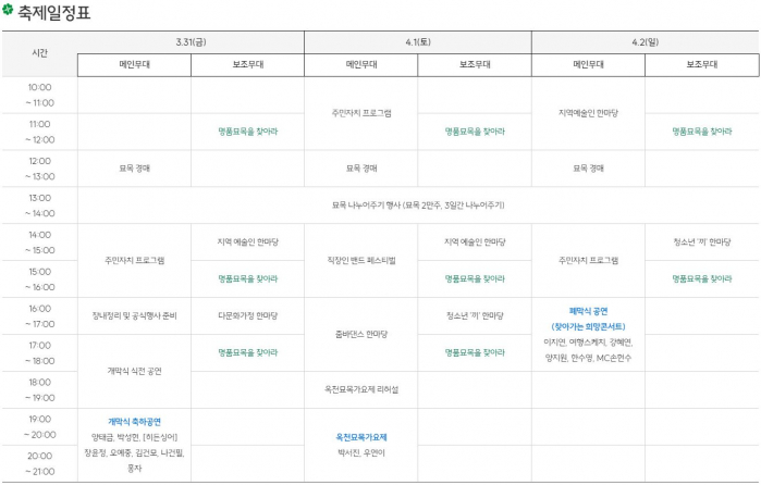2024년 3월 29일~ 3월 31일까지 3일동안 개최되는 이번 축제에 방문하시어 묘목 한 그루로, 부모님께, 자녀에게, 이웃에게, 맑은 공기를 선물하세요.