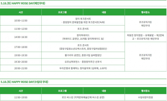 2024. 5. 18.(토) ~ 5. 25.(토), 8일간(중랑장미주간)