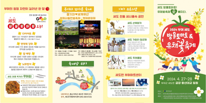 세도면의 특산물인 방울토마토를 홍보하고 세도면 금강변에 넓게 펼쳐진 유채꽃을 통해 관광객의 눈과 입을 즐겁게 하기 위한 지역 대표 봄 축제