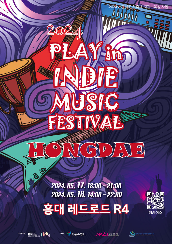 『올해로 두 번째 맞이하는 ”플레이 인 인디뮤직 페스티벌 홍대“가 5월17일부터 5월 18일까지 양일간 화려한 막을 올릴 예정이다.』
