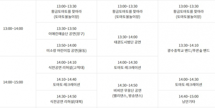 체험행사 : 토마토 화분 만들기, 토마토 풀장, 황금 토마토를 찾아라, 토마토 레크리에이션