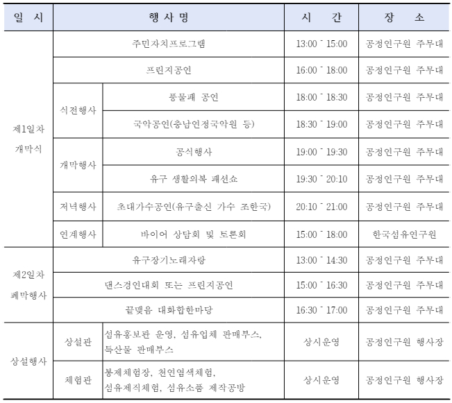 태그Yugu Textile Festival유구 섬유홍보관한국섬유스마트공정연구원공주축제공주 유구 축제