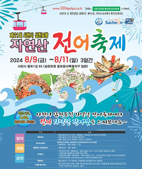 전어무료시식회, 맨손전어잡기체험, 사천시 특산품 깜짝경매, 핸드메이드 공예체험 등