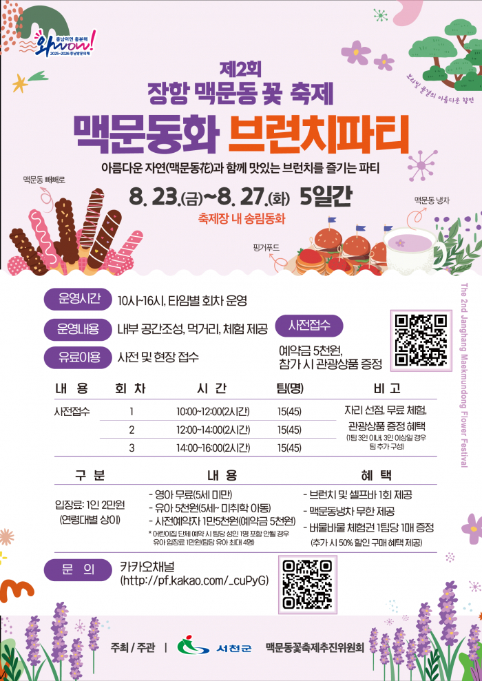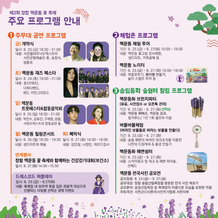 장항 송림산림욕장의 맥문동꽃을 비롯한 자연환경과 풍부한 먹거리가 어우러진 축제