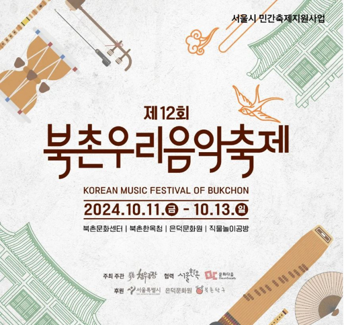 시원한 가을의 시작을 알릴 제 12회 북촌우리음악축제가 10월11일(금)-10월13일(일)까지 3일간 서울 북촌 일대에서 열린다.