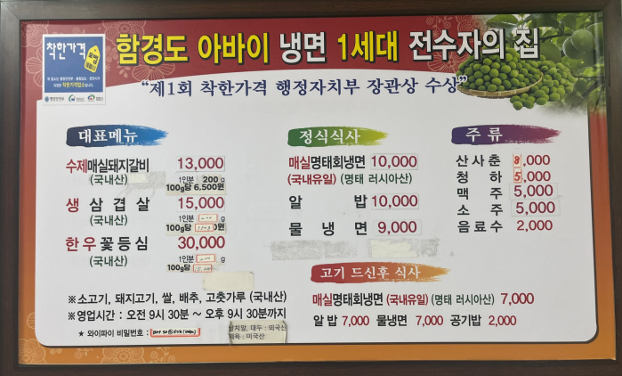 착한가격 행안부장관상 수상, 천안시 맛집 선정 등