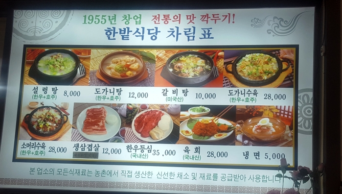 큼직하게 쓸어 나온 깍두기, 비법의 새우젓에 담근 서울식 깍두기와 한우 육수를 나름 비법으로 전수해 내려오는 방법으로 끓여낸 설렁탕이 특징적 메뉴다.