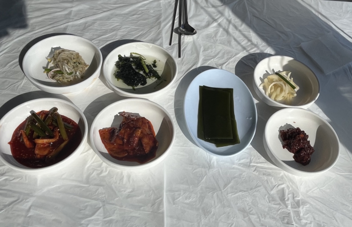 맛 있었습니다. 창가의 바닷가 풍경 바라보며