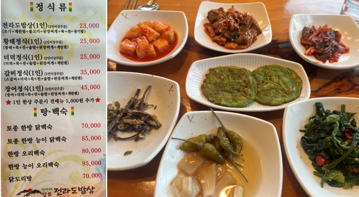 전라도밥상 (조기, 계란찜, 불고기, 된장찌개, 묵, 전, 밥)도 좋고