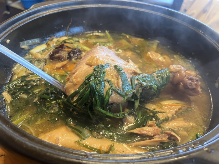 우리는 토종닭백숙을 시켰어요..