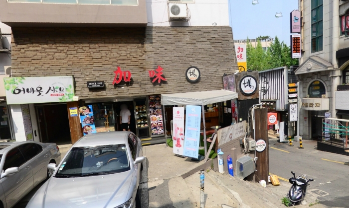지하철 이대역 3번 출구에서 이대 정문 방향 약 100미터 이삭토스트 골목 들어와서 미스터피자 맞은편.
