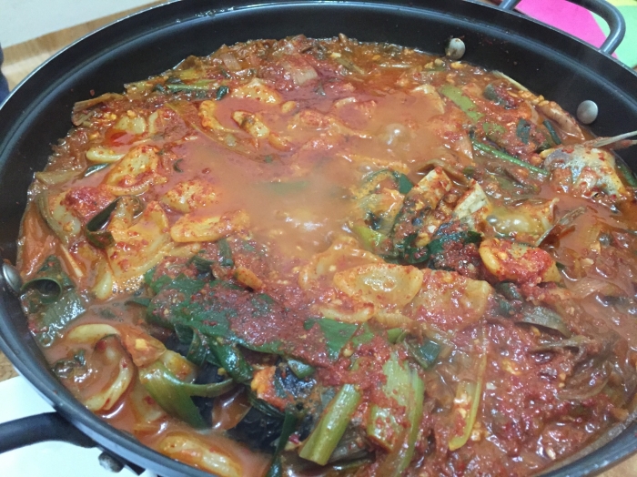 수제비도 넣어 나오고 테이블 위에서 끓면서 먹는 국물은.. 천천히 먹을수록, 그 진한 맛이 감동을 준다.