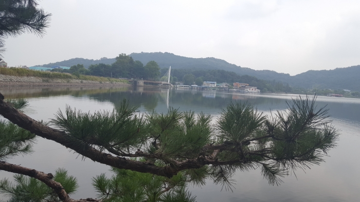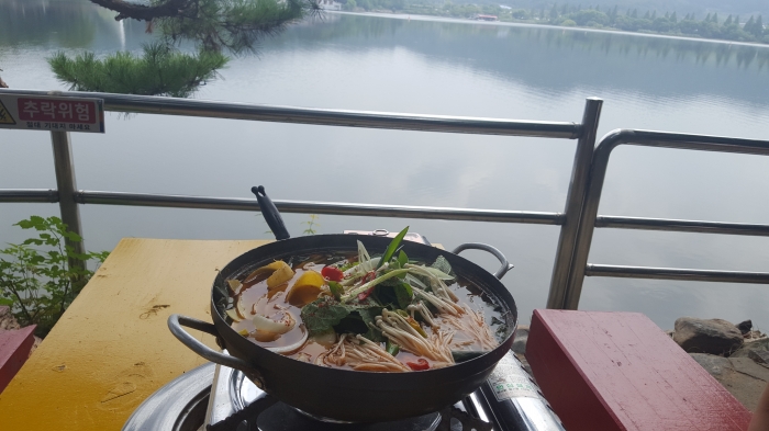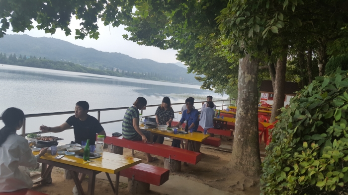 신정호 저수지 호숫가의 경관좋은 식당