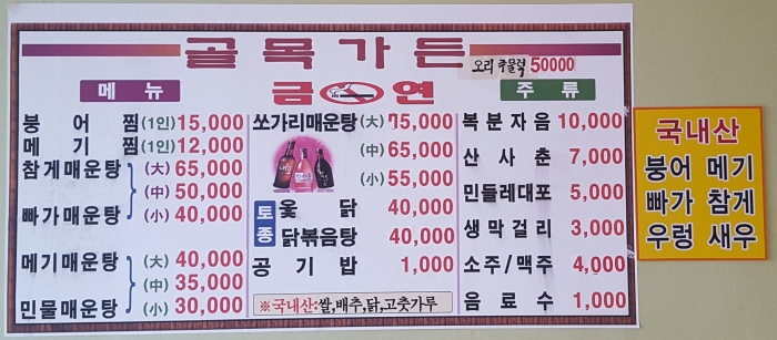 골목 가든 사장님은 탑정호 붕어만 사용하고 붕어와 쏘가리가 없음 장사를 안하시는 아주 고집 있는 식당입니다. 꼭 전화하고 가세요...
