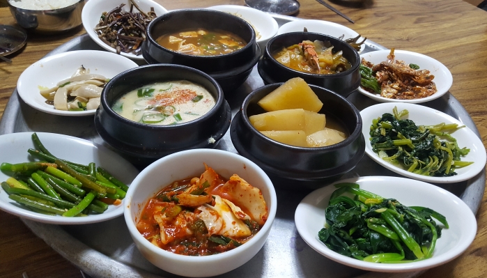 그윽한 게국지와 무우탕 계란찜 된장찌게 등 4가지 뚝배기가 깊은 인상을 준다.