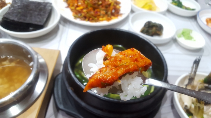 아직 뼈(가시)가 제대로 생기기 전에 잡은 우여에다 갖은 야채와 새콤한 초고추장을 알맞게 버무려 먹는다고 합니다. 봄철에 먹는 우여회의 맛이 일품이라고 하는데, 무엇보다도 논산, 부여의 금강 유역 일원에서 잘 하는 집이 많이 있습니다. 곁들이는 탁배기나 모주 한잔은 더울 그 맛을 못 잊게 만든답니다.