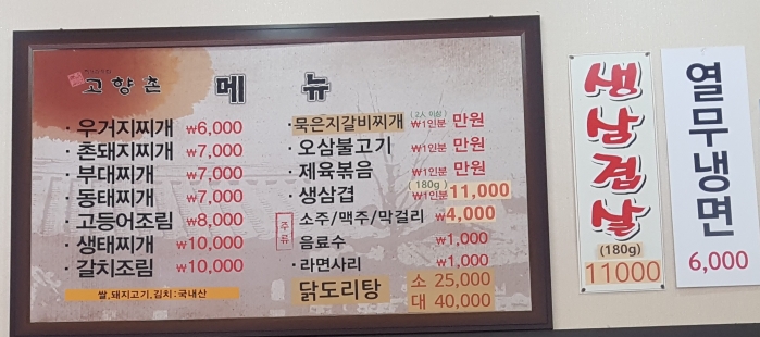97년에 갤러리아 타임월드점에서 시작하였고, 반석동으로 옮겨 촌돼지찌개 부대찌개 동태찌개로 이름을 떨치고 있는 집.