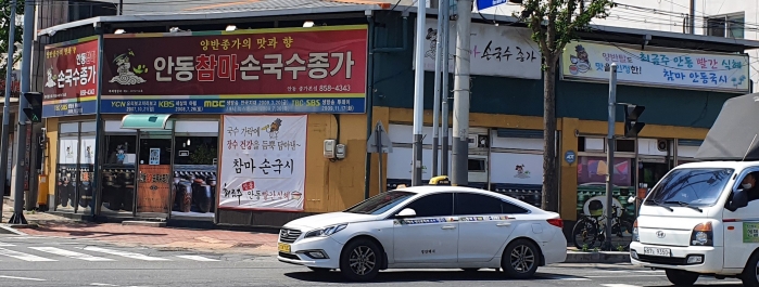 안동시청에서 도산서원 방면으로 약 400미터 가면 왼쪽에 <안동양반 참마 손국수 종가>라는 긴 이름의 간판을 내 걸고 있는 식당에 손님이 줄을 서 있는 게 보인다.
