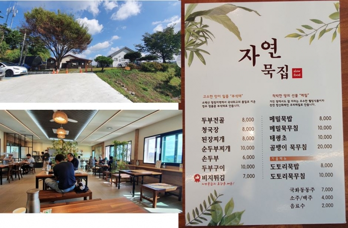 손두부, 두부전골, 묵밥, 청국장, 두부구이, 묵무침 등 골라 먹을 수 있다.