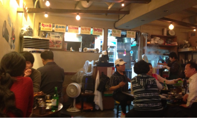 청계천과 종로사이 저녁에 꼼장어를 숯불에 굽는 냄새에 이끌려 들어가게 되는 집..