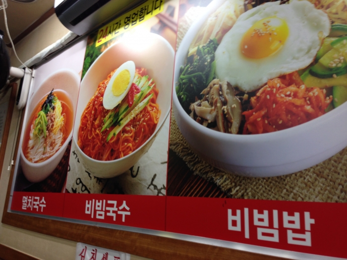비빔국수와 멸치국수를 많이 시키며 비빔밥도 있다.