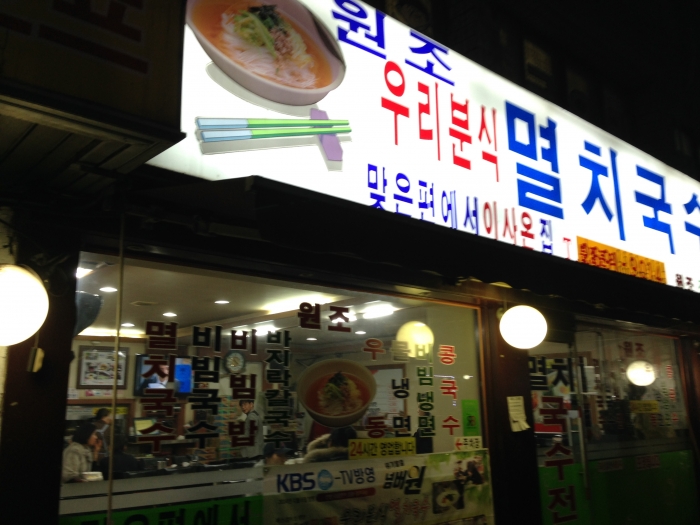 시원한 멸치국물에 매료되어 한 밤중에 자주가는 맛집입니다