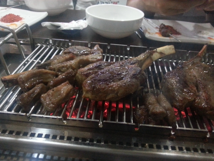 양삼각갈비, 양늑간살, 양꼬치, 얼큰양탕이 포함되어 있는 세트B 메뉴를 시켜 봤다.
