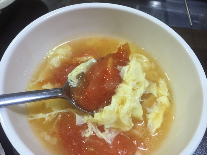 토마토계란탕이다. 속을 달래주는 영양만점의 웰빙 안주다.