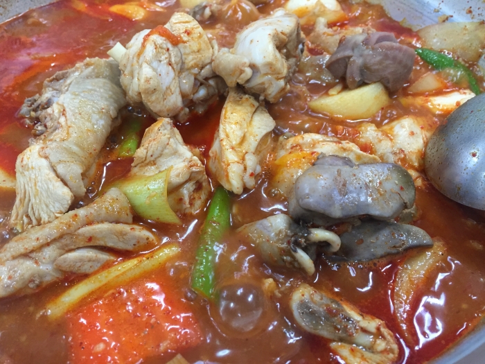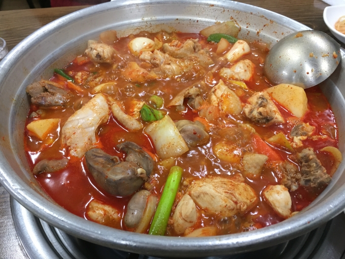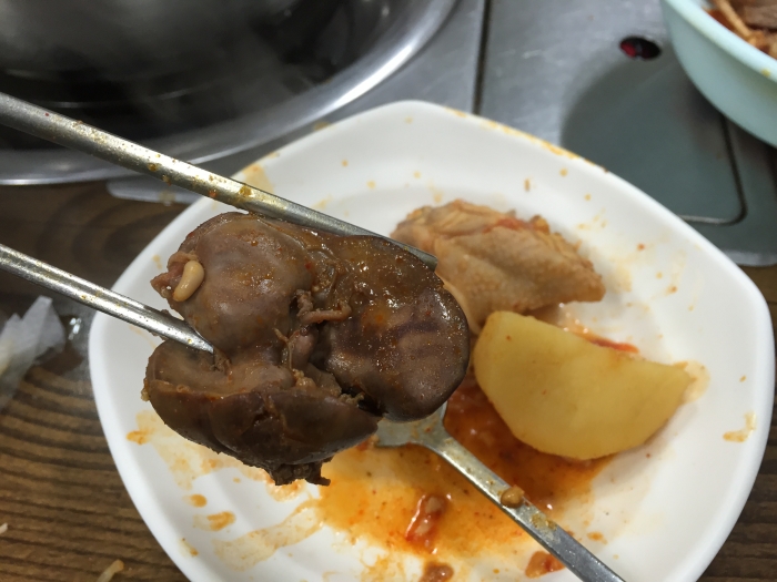 보통의 도리탕(닭볶음탕)은 내장을 넣지 않지만 이집은 염통 허파 간 모래주머니 등의 닭내장이 많이 들어간다.