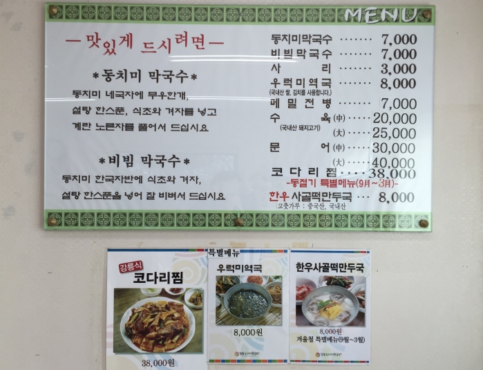 동치미막국수 비빔막국수 그리고 우럭미역국 골고루 시켜 먹으면 졿다.