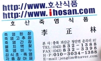 호산죽염식품은 옛날 전통방식으로 소금대신 죽염을 주원료로하여 순수 국산콩과 지하 130M 암반수로 제조한 죽염된장과, 괴산 쇠뿔고추를 태양에 건조하여 밀띄운 것에 엿기름 삭인 물로 제조한 죽염고추장 모두 방부제를 전혀 넣지 않고 옛 맛을 재현해 낸다.
