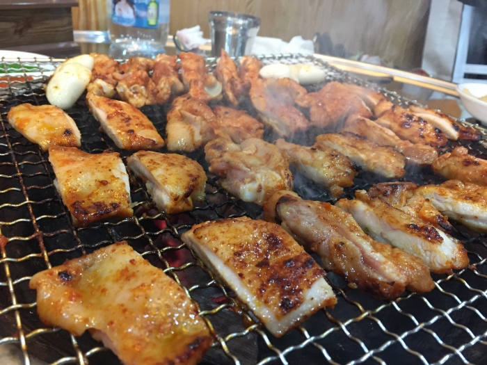 똥집구이 - 쫄깃한 닭똥집을 숯불에 구워 먹음 (여성선호)