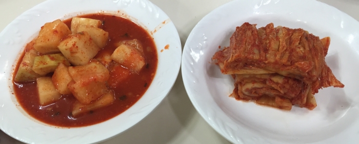 깍두기와 묵은 배추김치의 맛을 말로 사진으로 표현하기 힘들지만