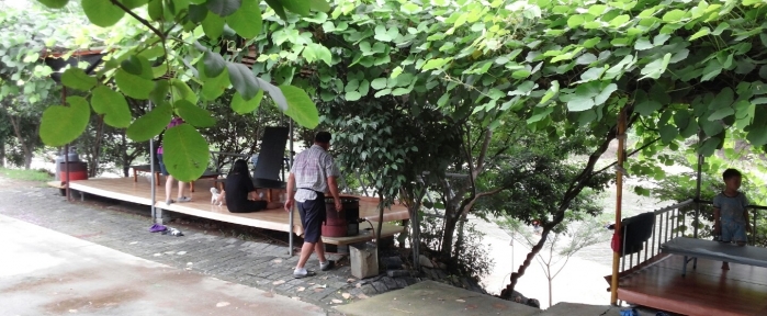 안에도 손님이 많지만 여름에는 거의 밖에서 평상 위에서 시원하게 보양식을 즐긴다.