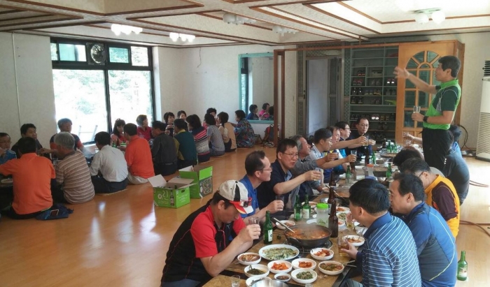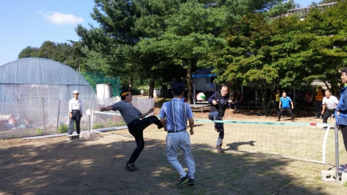 식사가 끝나고 단체로 족구를 한판 하는 산악회들이 많다.