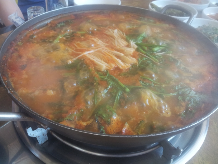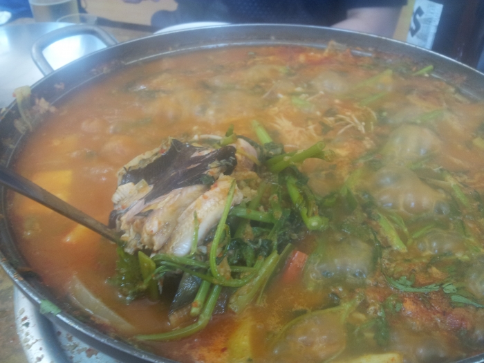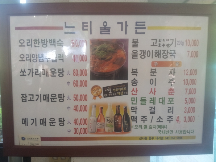 특히 올갱이해장국이 별미요 올갱이빈대떡이 특이한 메뉴인데 매운탕 시키면 따라 나온다.