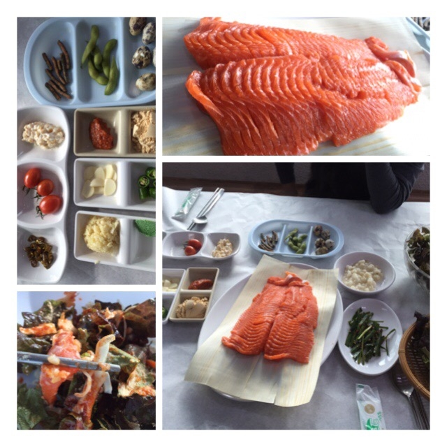송어회는 아주 부드럽습니다. 송어(trout)는 식감이 연어(salmon)와 비슷하지만 더 쫄깃하고 담백하지요. 그리고 향이 한국적입니다.