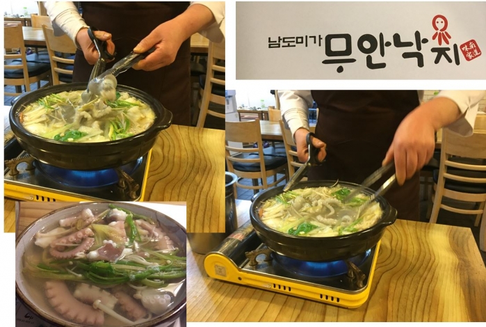 南道味家 무안낙지 탕탕이와 연포탕이 셋트로 무안 갯벌의 정취를 선사해준다.