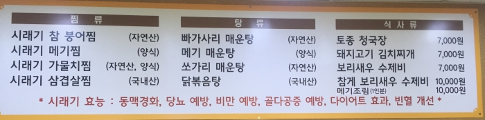 가물치찜이라는 생소한 메뉴도 정사장이 직접 개발한 것이다. 메기마늘구이도 시래기삼겹살찜도 세상에 이 집 밖에 없는 메뉴다.