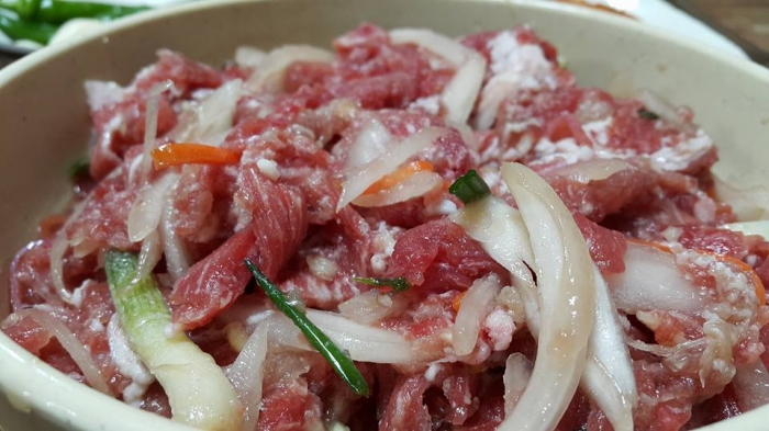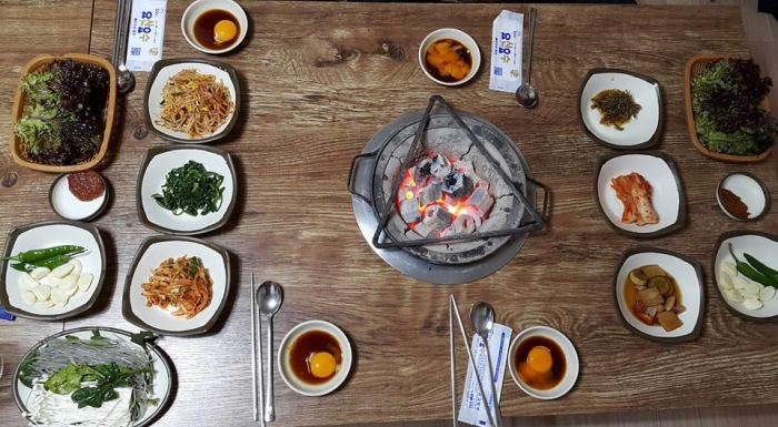 계란 노른자를 소스로 먹는 불고기가 옛날식이란다.