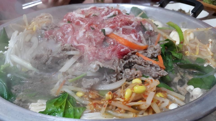 그리고 주전자에 담겨 있는 사골육수는 물론이고 시금치 팽이버섯 당면 등을 골고루 리필을 해 가며 ..