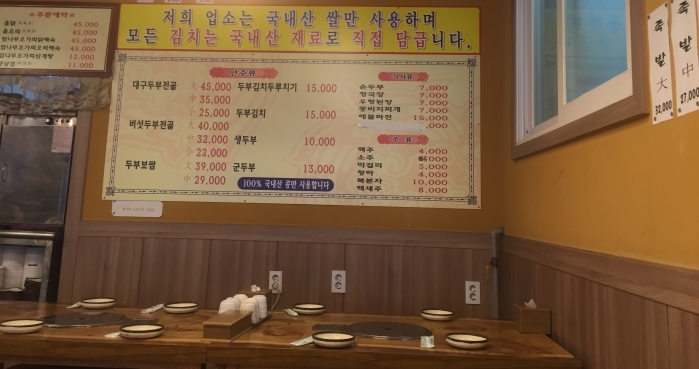 순두부, 청국장, 우렁된장, 콩비지찌개