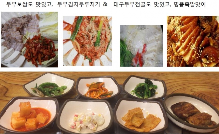 대구두부전골, 버섯두부전골, 두부보쌈, 두부김치두루치기