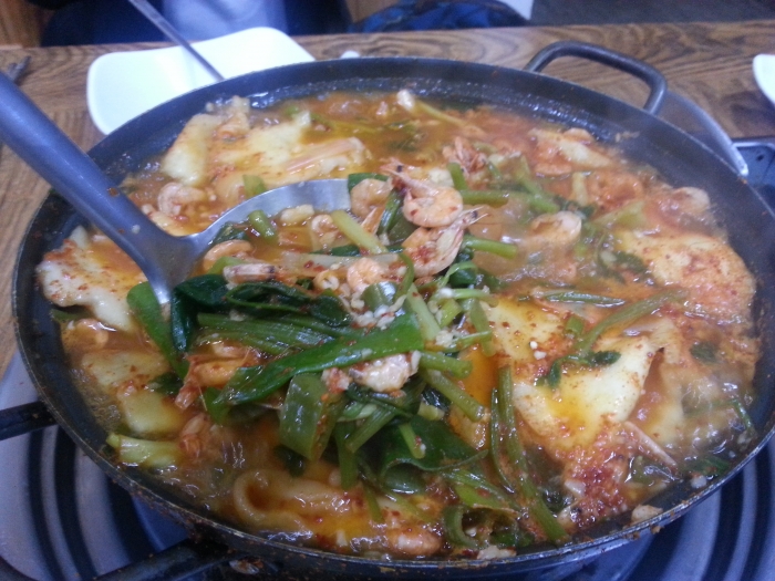 새뱅이(새우의 이쪽 지방 사투리)가 듬뿍 들어가 있다.