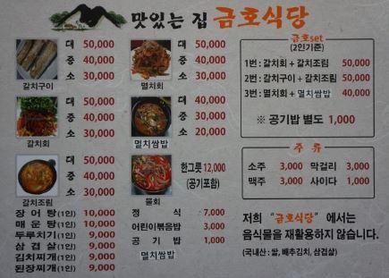- 금호식당은 멸치쌈밥 멸치회 갈치회 물회 전문점