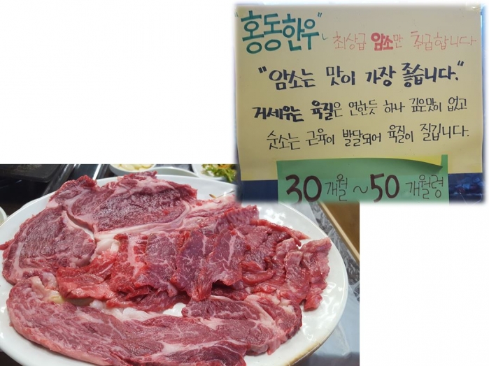 홍동한우 (운주식당) 는 최상급 암소고기만 취급한다.
