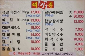 석갈비 / 토종닭수제비볶음탕 / 메밀막국수