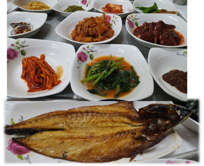 멸치속젓 아주 맛있고 모든 야채와 나물 그리고 김치가 엄마가 해준 집밥 그대로다.