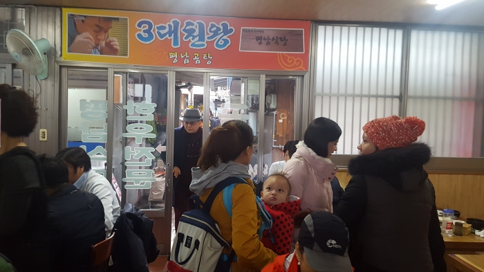 줄을 서서 먹는 게 아니라 아예 골목안에 단체 손님이 줄을 잇고