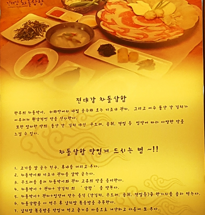 차돌박이 관자 갓김치 삼합을 곰취에 싸서 먹는 사람이 가장 목받는다는 속설도 있고
